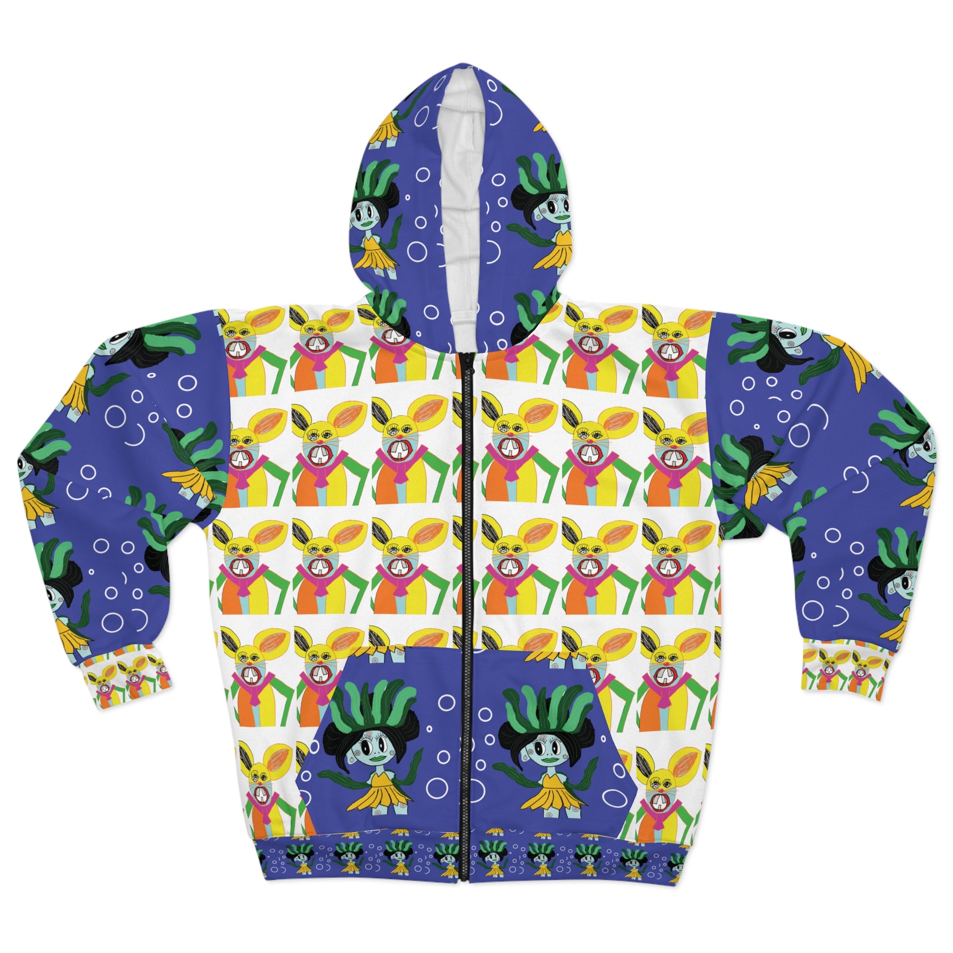 Elevate your casual wardrobe with this vibrant unisex zip hoodie! Featuring an eye-catching all-over print bursting with color, this hoodie adds a playful touch to any outfit. Its medium weight fabric keeps you cozy while the spacious pockets provide warmth and storage for essentials. Perfect for relaxed outings, cozy nights in, or as a statement piece at festivals, this hoodie is ideal for trendsetters and anyone who loves to stand out in a crowd. Celebrate occasions like birthdays, spring break, and weekend adventures with style and comfort!